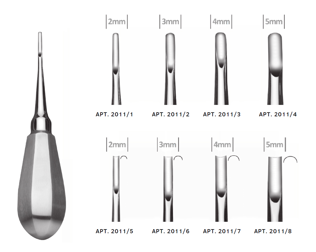 Используется для удаления зубов и зубных корней или отделения их от зубных лунок.