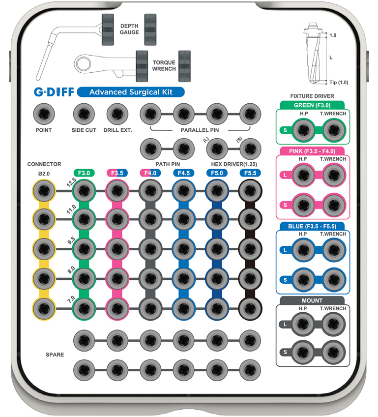 Расширенный хирургический набор G-DIFF AL «Advanced Surgical Kit» предназначен для установки имплантатов с