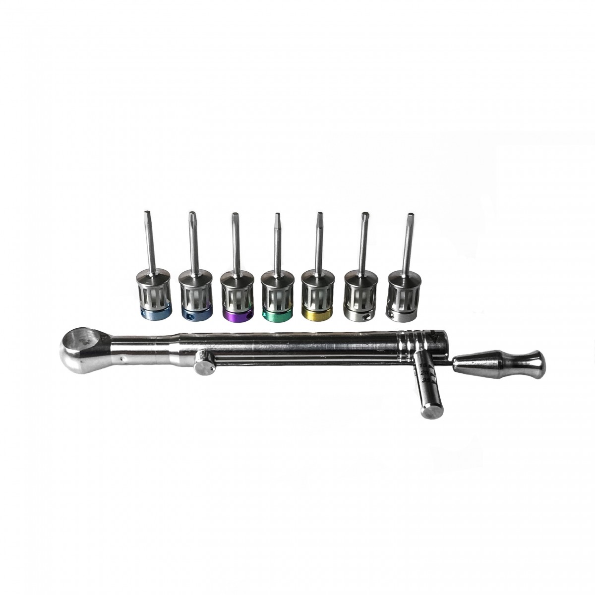 Регулируемый торк от 15 до 35 N-m. Набор включает в себя отвертки для следующих систем имплантации: