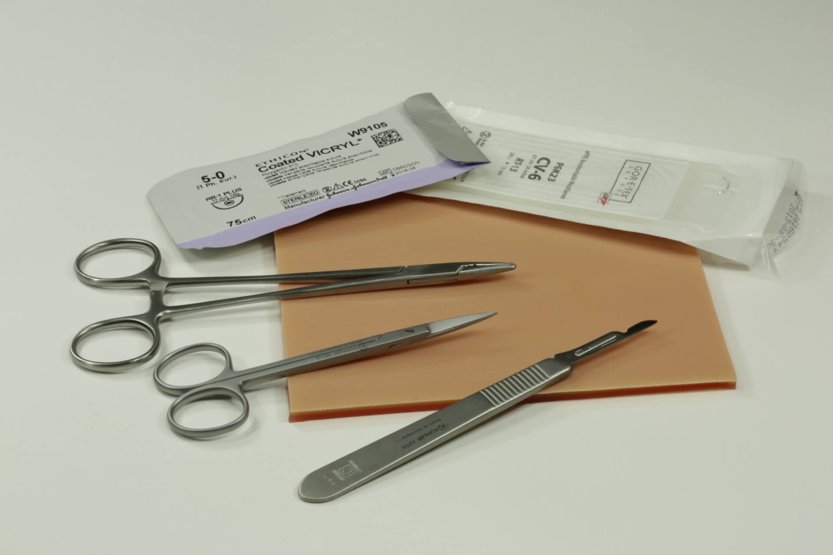 Двухсторонний хирургический шаблон для тренировки наложения швов.