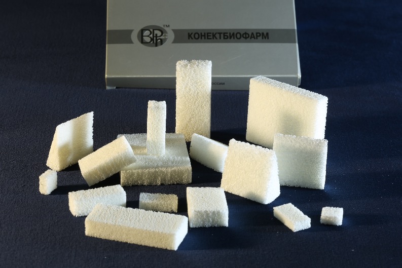 Остекондуктивный и остеоиндуктивный пористый биоматериал для заполнения объема костного дефекта или полости.