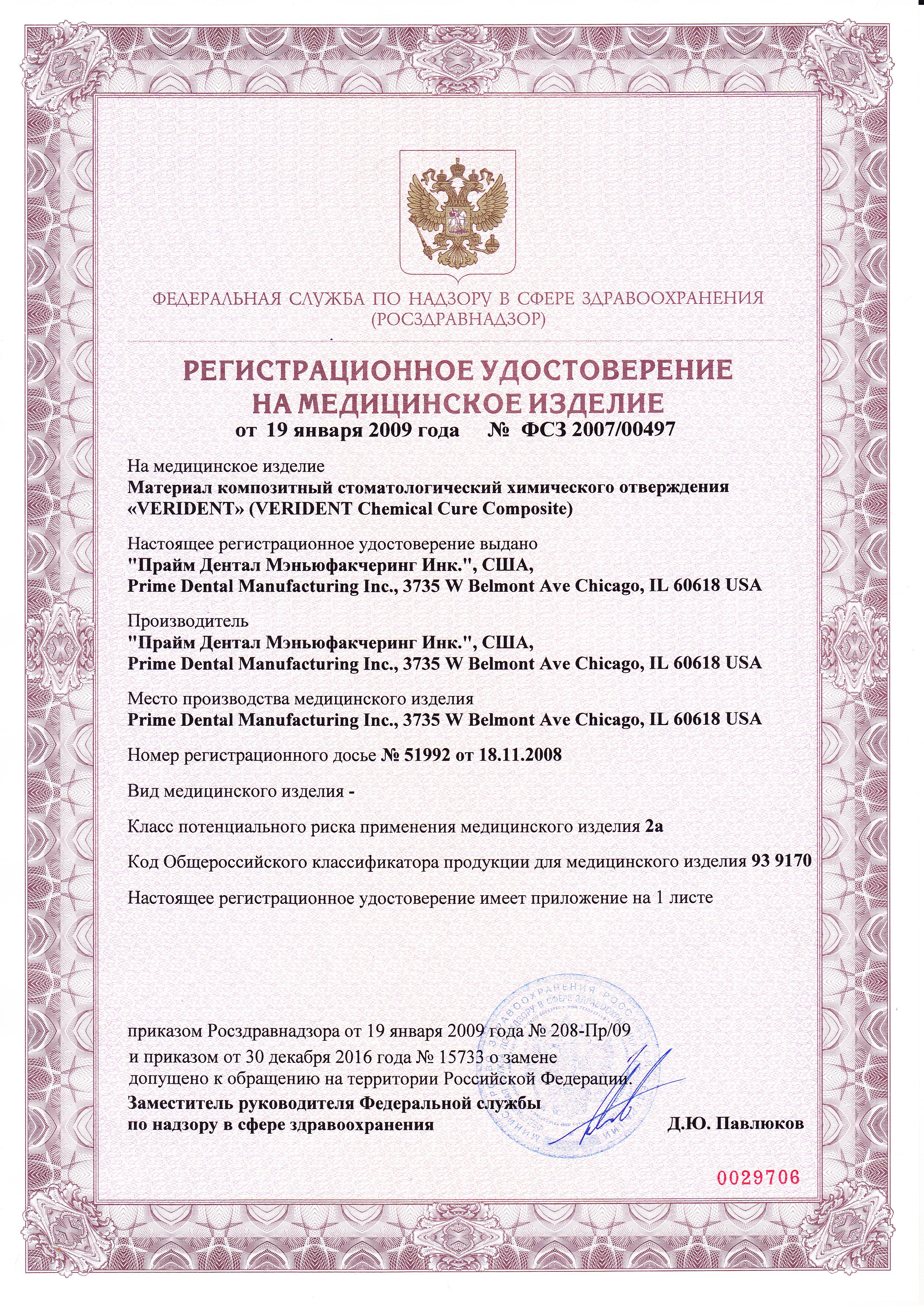 Материал композитный стоматологический химического отверждения VERIDENT (Chermical Cure Composite)